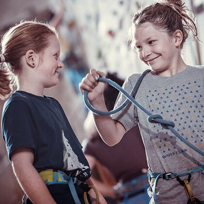 In unserem 3-tägigen Klettercamp in den Ferien lernen die Kinder unter Anleitung unserer Trainer spielerisch das Klettern im Toprope. Knotenkunde und lustige Kletter- und Boulderspiele stehen jeden Tag auf dem Programm.
